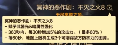 这个时地图机制,在挑战每60秒时,地图上会随机出现3个图腾,玩家需要在一定时间内将图腾打碎,倒计时结束后根据打碎图腾数量,使boss进入减防状态,在实际的挑战中,这个图腾的血量还是很多的,仅凭几个小技能很难将其打碎,同时还要注意boss的攻击,如果玩家此时将boss控在一起正在连招,就没必要去打图腾了,继续连招即可,如果不是,再考虑打图腾