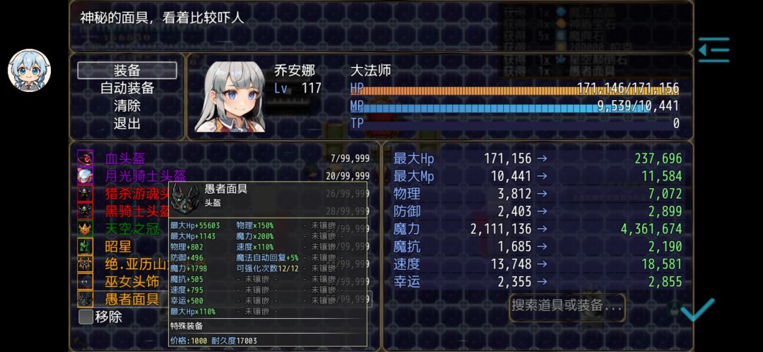 进去之后拿蓝属性,旁边的地核怪打不过,爆的法师装备