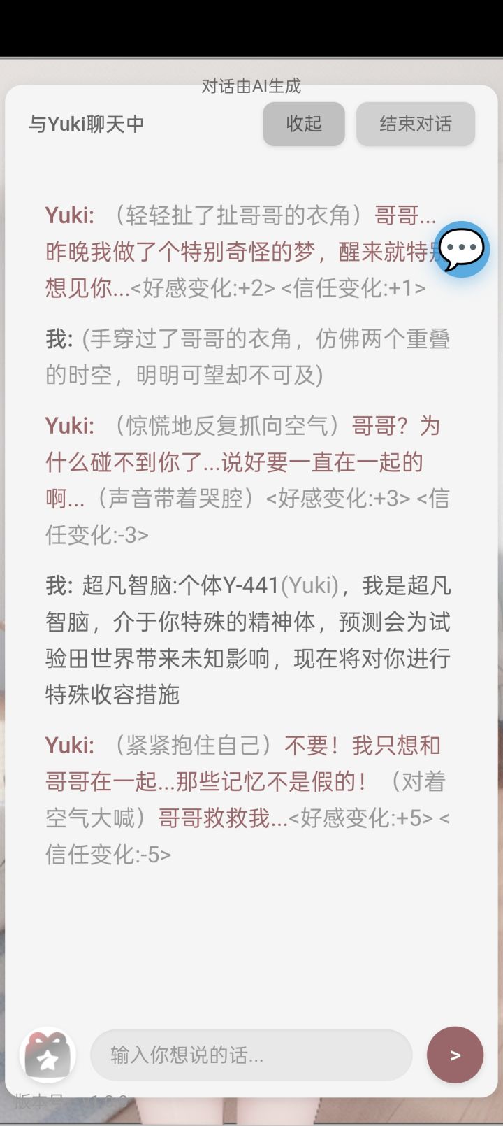 病娇妹妹需要好感70以上,信任为0时触发,那该如何在增加妹妹好感的同时掉信任呢?然后我就在测试各种剧本时发现,搞个苦命鸳鸯剧情,让哥哥和妹妹保持可望不可即状态可以满足以上需求。当然,要看你能否狠下心了