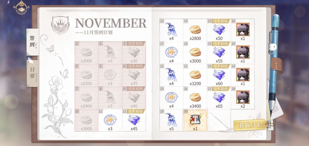 大约就是这几个地方可以领钻石了,剧情大部分人应该都过了所以不包括剧情,按照这样存一个月就是2690钻加一个老何兰颜料,大约为十七抽(木有加上成就),所以只要你忍住不抽卡留给之后活动的还有多余的老荷兰颜料和钻石