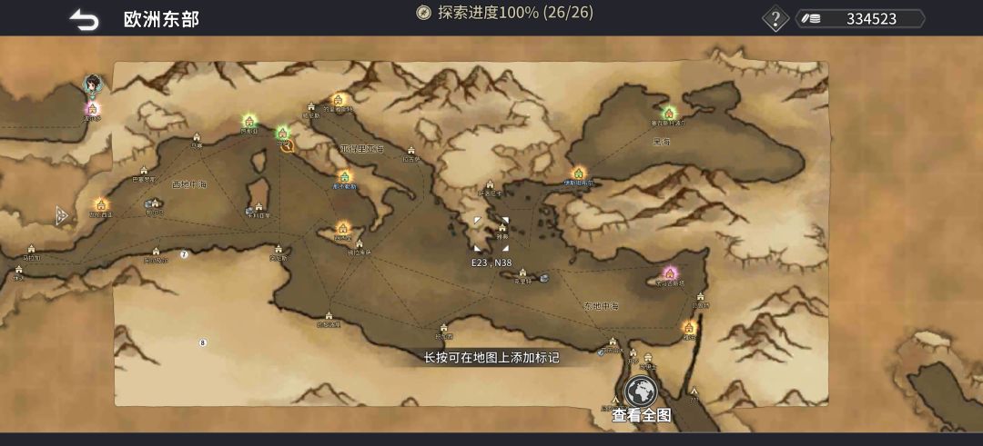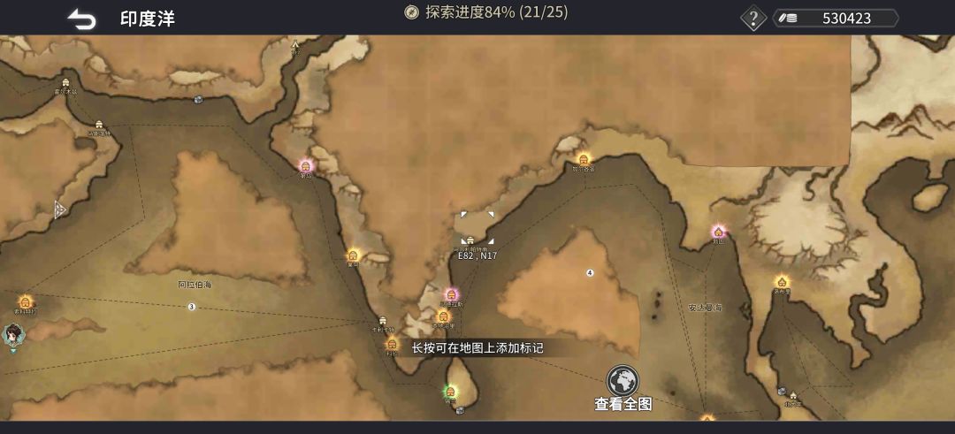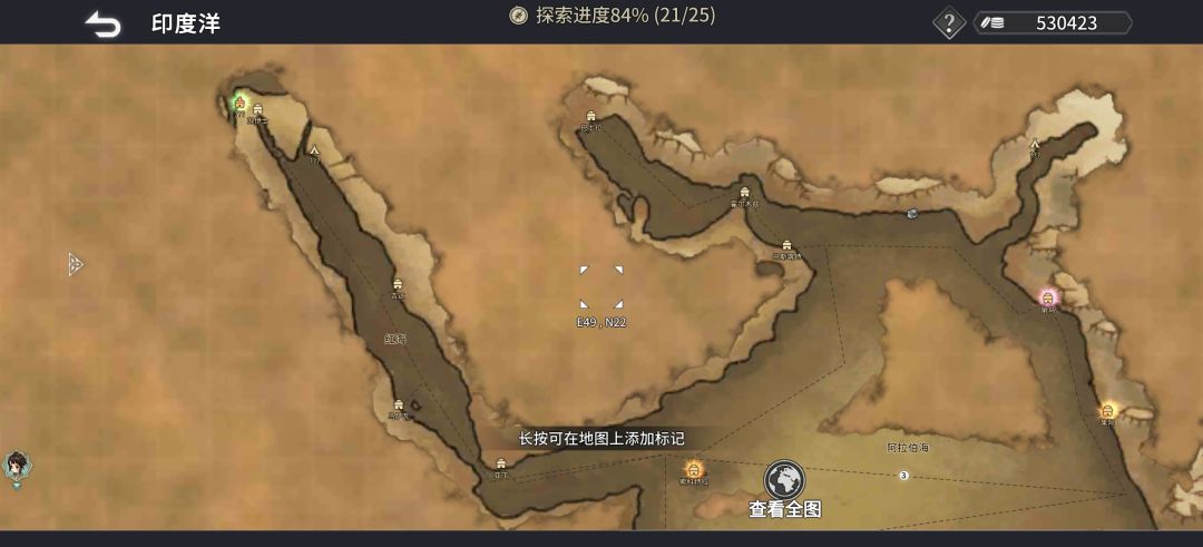 所有城市位置,大致和其他航海类游戏差不多,名字也一样,常玩大航海类游戏的可以估测出来,地图总体不算小。