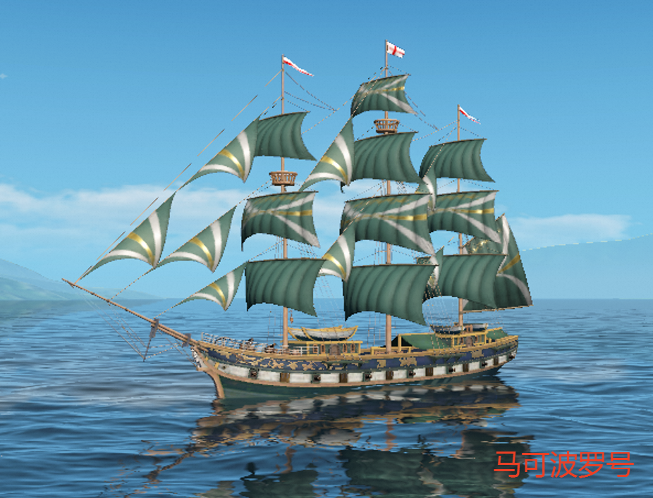 猫猫这里再分享一个历史上的飞剪船(茶船),是不是很帅,游戏也得到还原传承!跟这次的马可波罗号很相似吧!