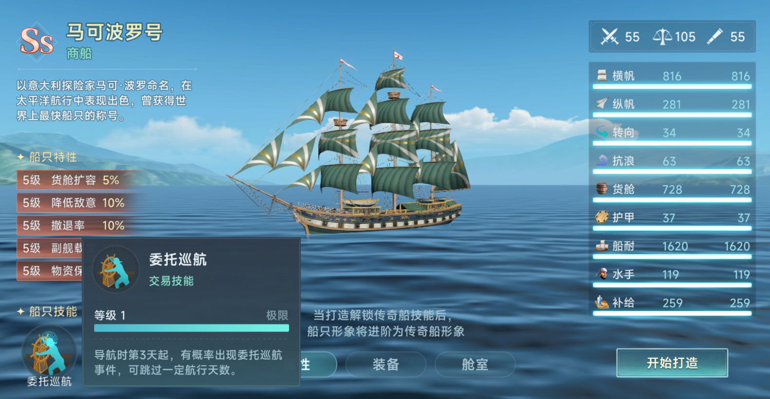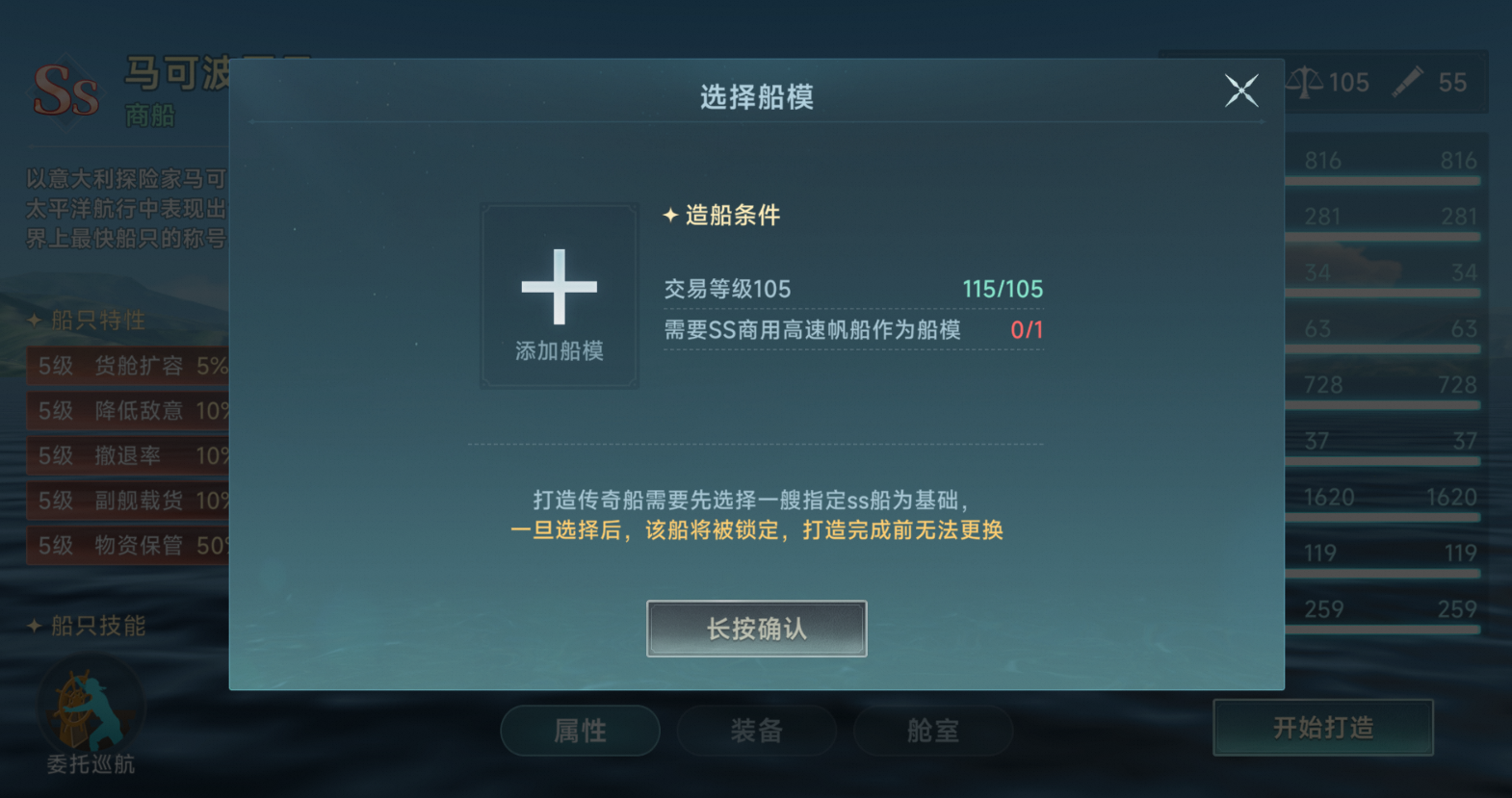 二打造条件打造条件:需要100等级的商用高速帆船即可