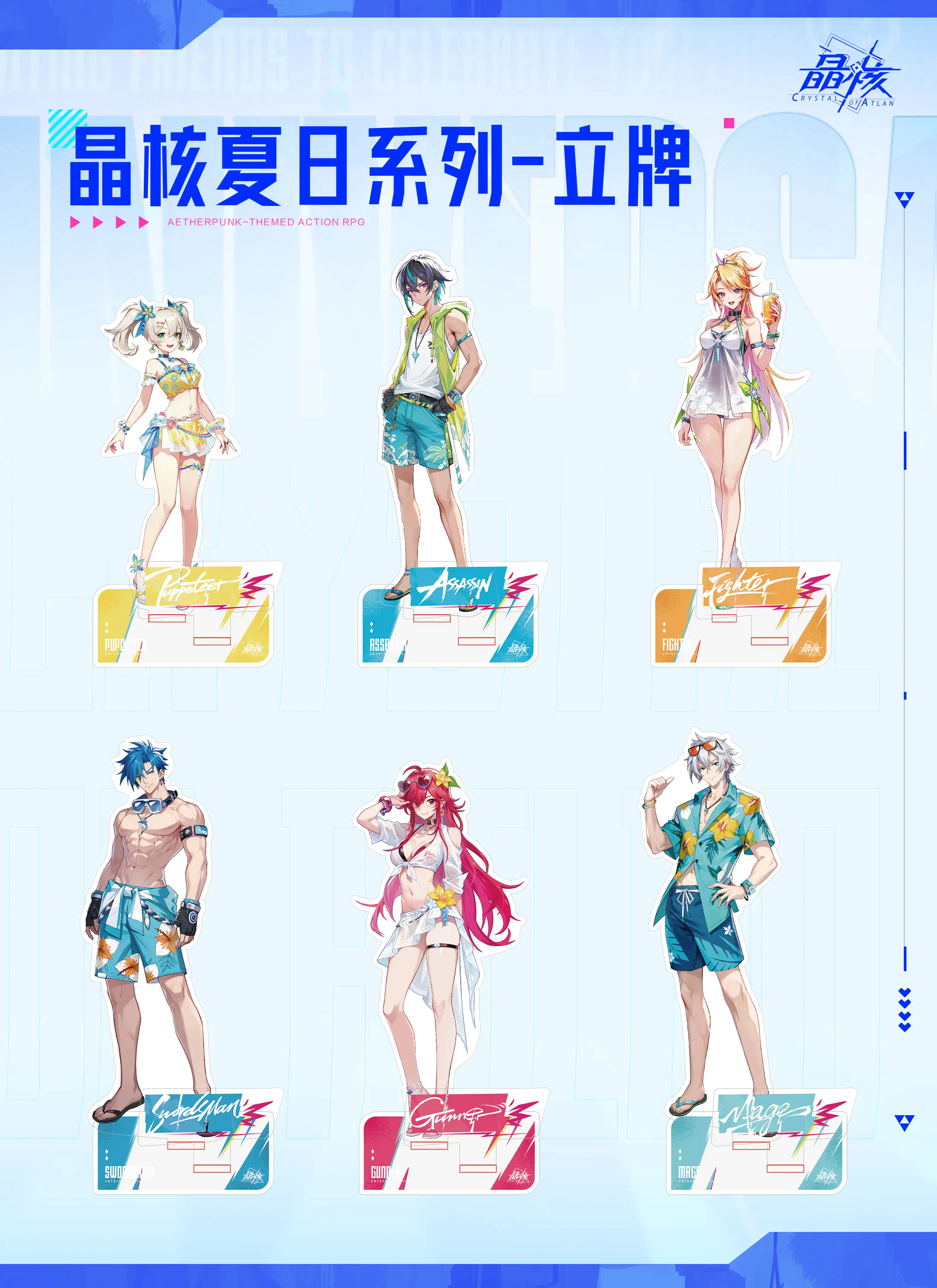 回复层数达到50层时,随机抽出3位冒险者,每人送出晶核夏日系列-立牌(随机职业)*1