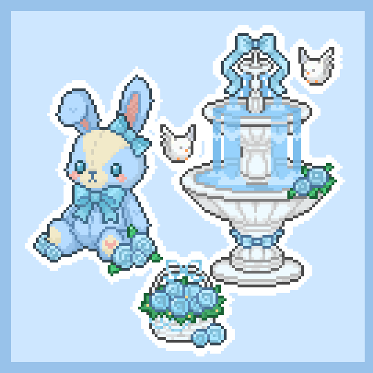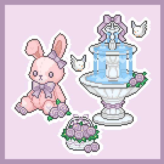 包含一个大号小兔玩偶摆件,动画喷泉摆件及一个玫瑰花篮摆件(均含手册)