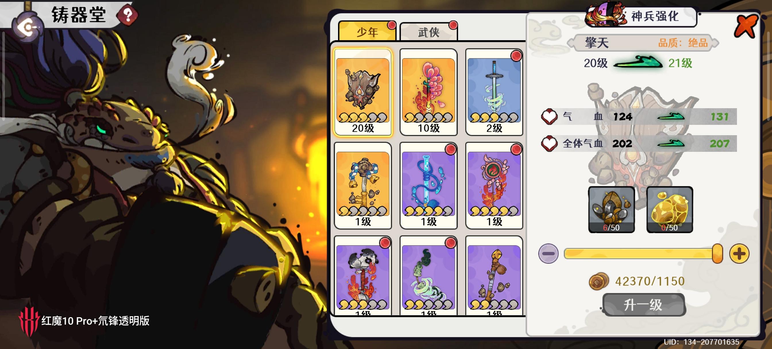 开启神兵强化功能以后,第一件事将剑魔神兵【九剑·双锋】优先提升至25级突破。然后提升少年神兵擎天和祝融的等级至25级,最后提升兔子和狮子神兵至25级。