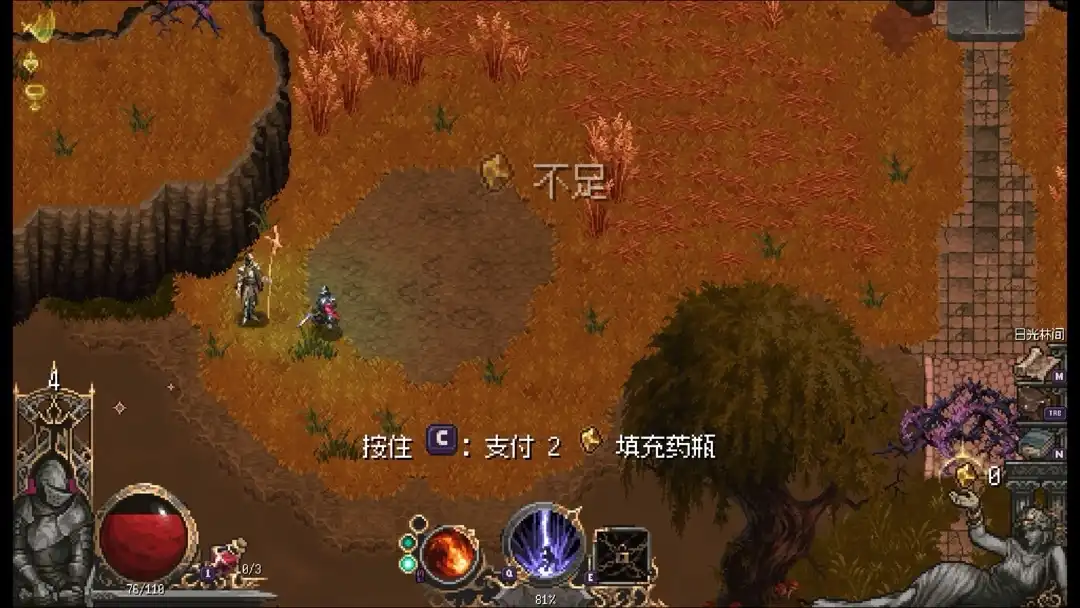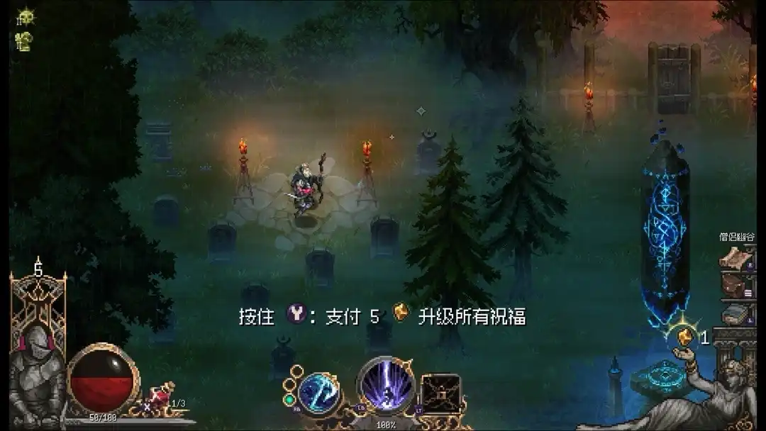 那既然有神秘小老头了,那当然也有商人和卖血(瓶)的人了,商人可以自由买卖,血瓶有钱就能一直买,而且由于关卡是固定的,他们也是固定在这些区域