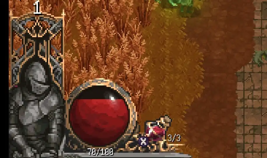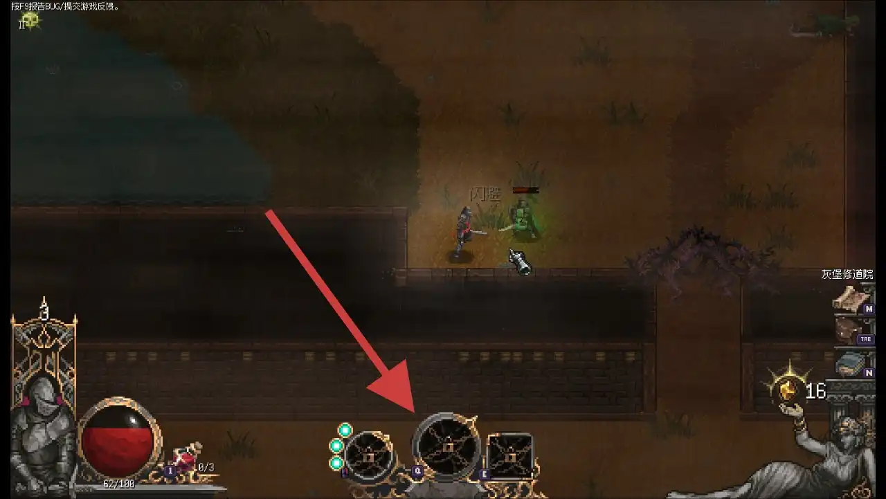 左下角是我们的血量 ,初始拥有3瓶药,每瓶回复50点血量,饮用时无法移动