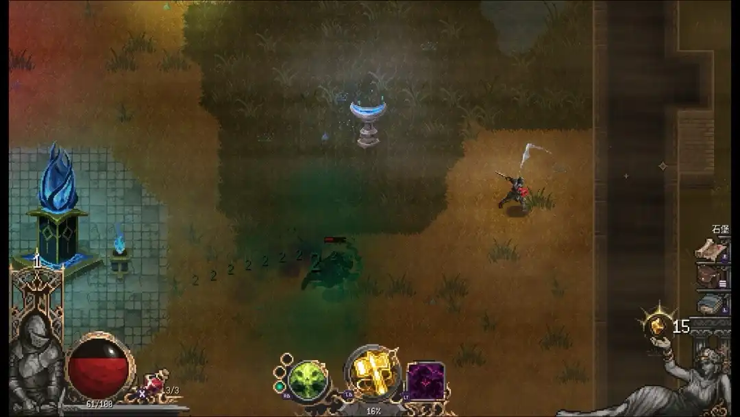 ②关卡设计游戏采用箱庭式探索+肉鸽 ,你要说跟什么很像呢,这种探索模式就和《死亡细胞》类似,只不过它的关卡是完全固定的,魂味的话只是表象。