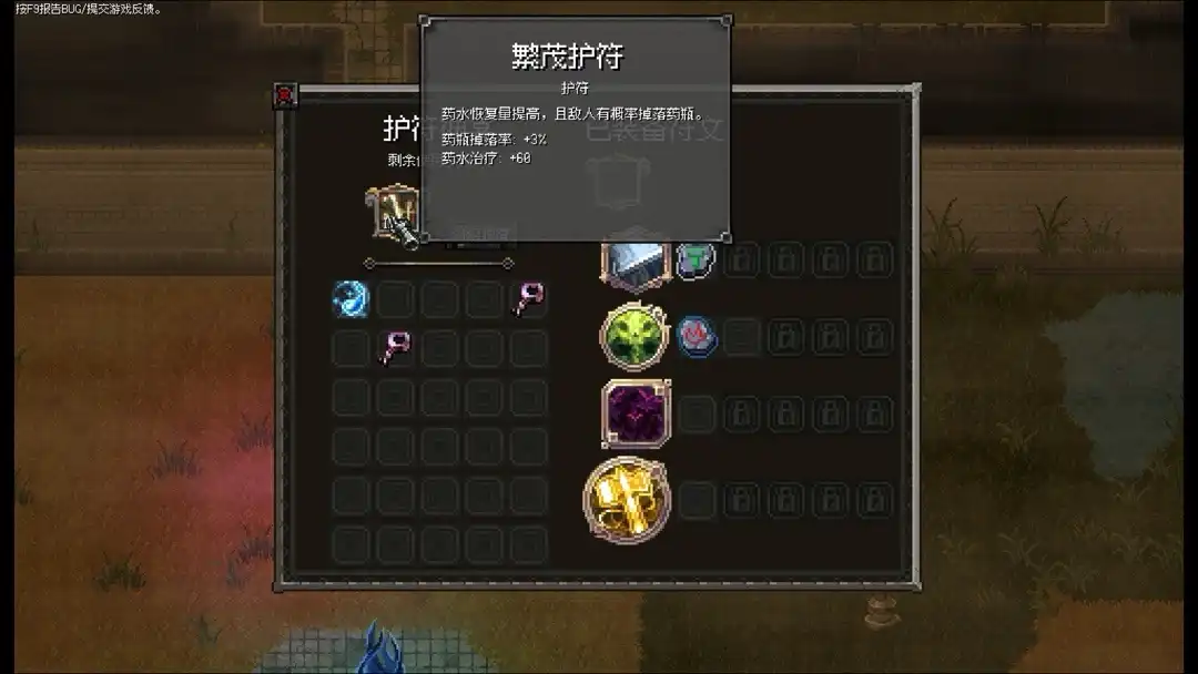 而我们人可以装备一个护符,区别于护符,护符只能装备一个,且效果一般较为强大,像是提升攻击等等