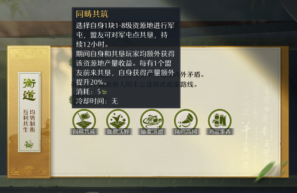 此外,增产的资源效果和衡道的技能不叠加,注意不要重复使用啦。