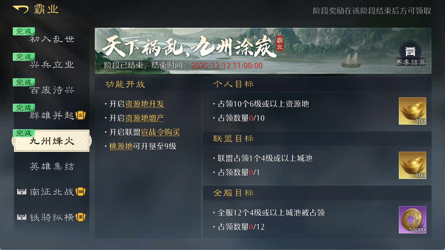 在游戏的第四日11点,我们将解锁霸业进程【九州烽火】。