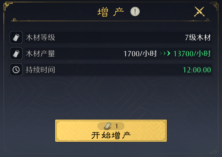 增产是游戏中重要的资源来源方式,尤其是交战期,可以迅速获得粮食的恢复,提高战斗能力。