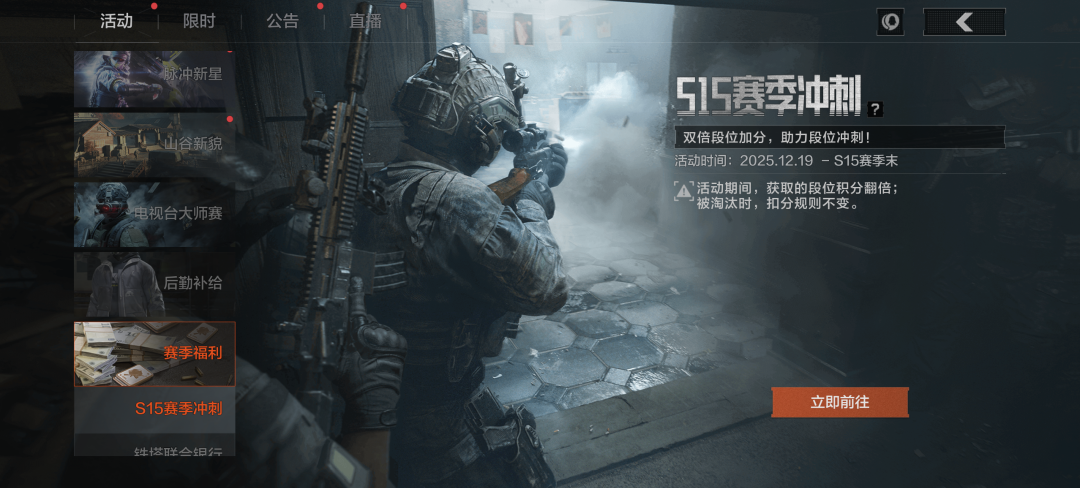 免费十连,上线就领!S15赛季末冲刺现已开启,向更高段位全力进发!还有多重玩法活动等你来体验!