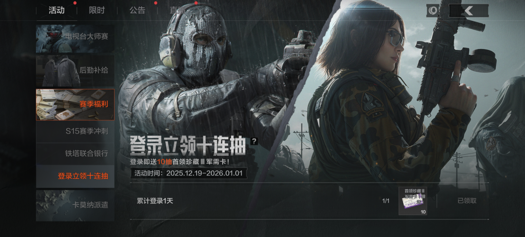 暗区日历丨免费十连上暗领!S15赛季末冲刺进行中!