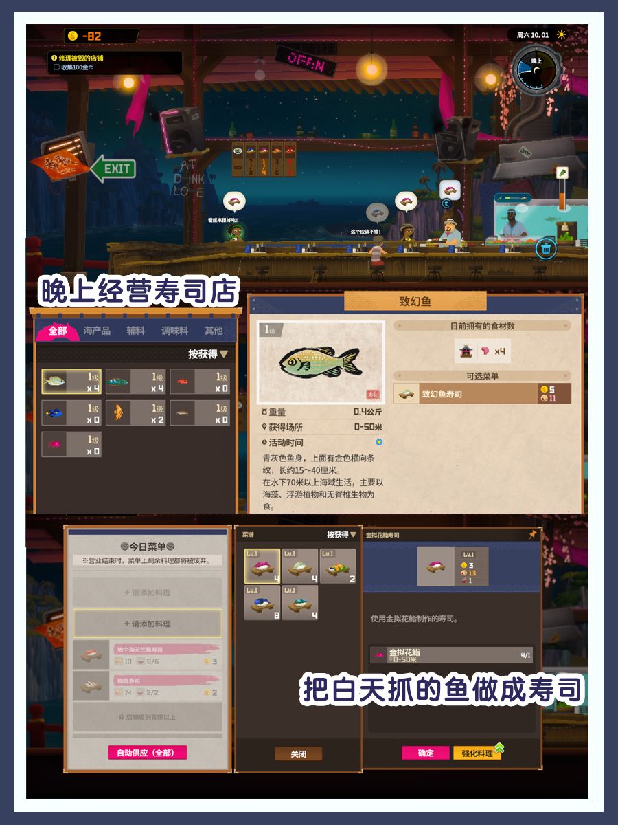 - 夜晚经营寿司店,升级菜谱,打造五星口碑!