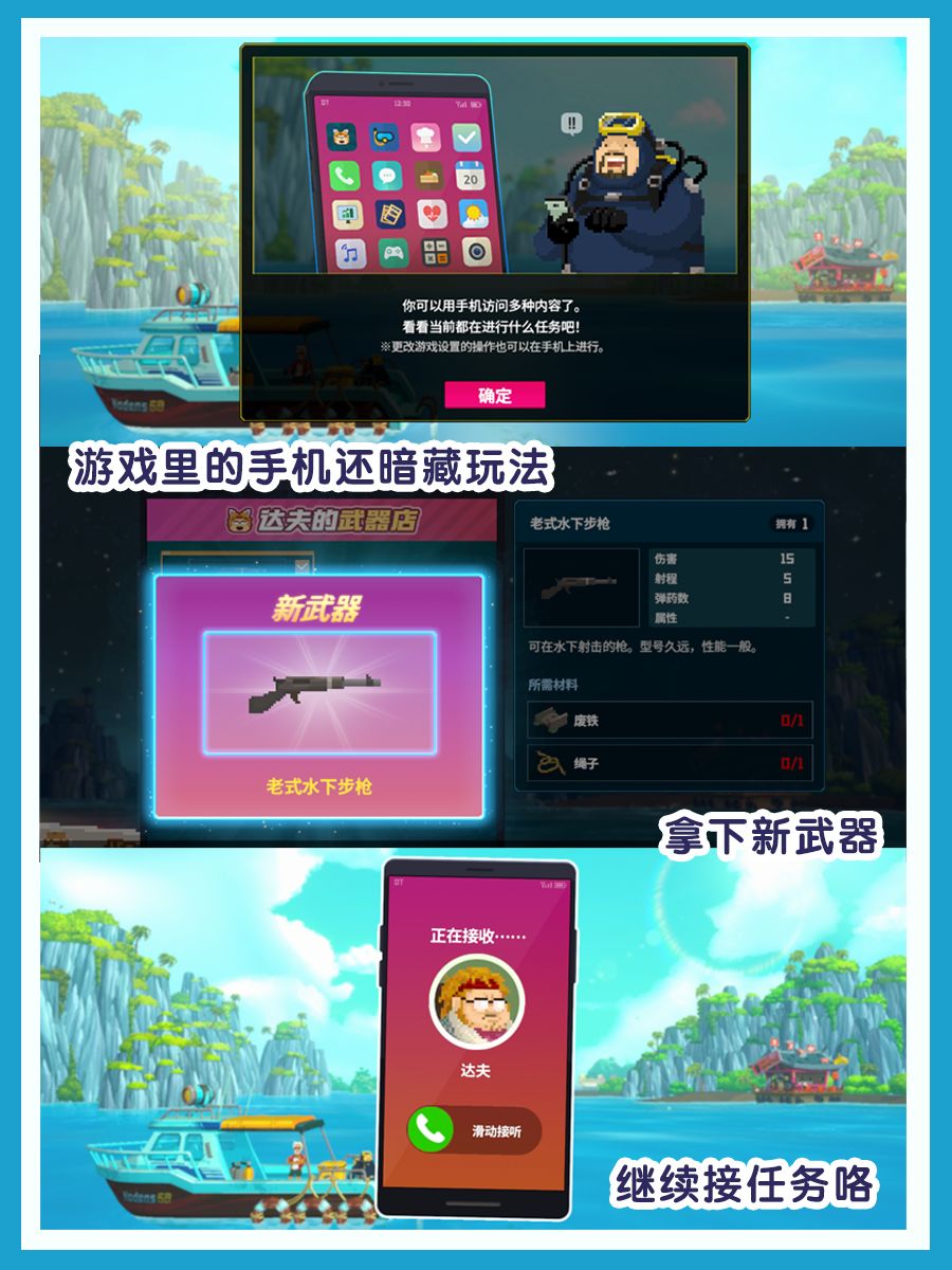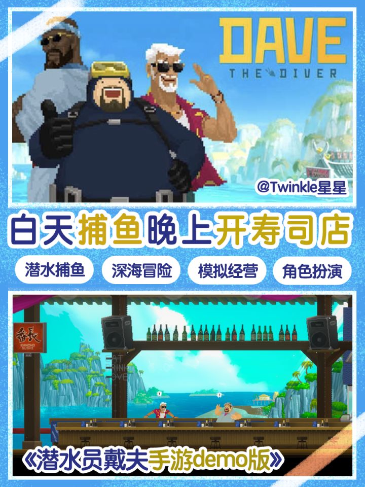 📖 故事简介:扮演胖萌潜水员戴夫,白天潜入神秘蓝洞捕鱼探秘,晚上经营寿司店招待顾客,揭开海底谜团!