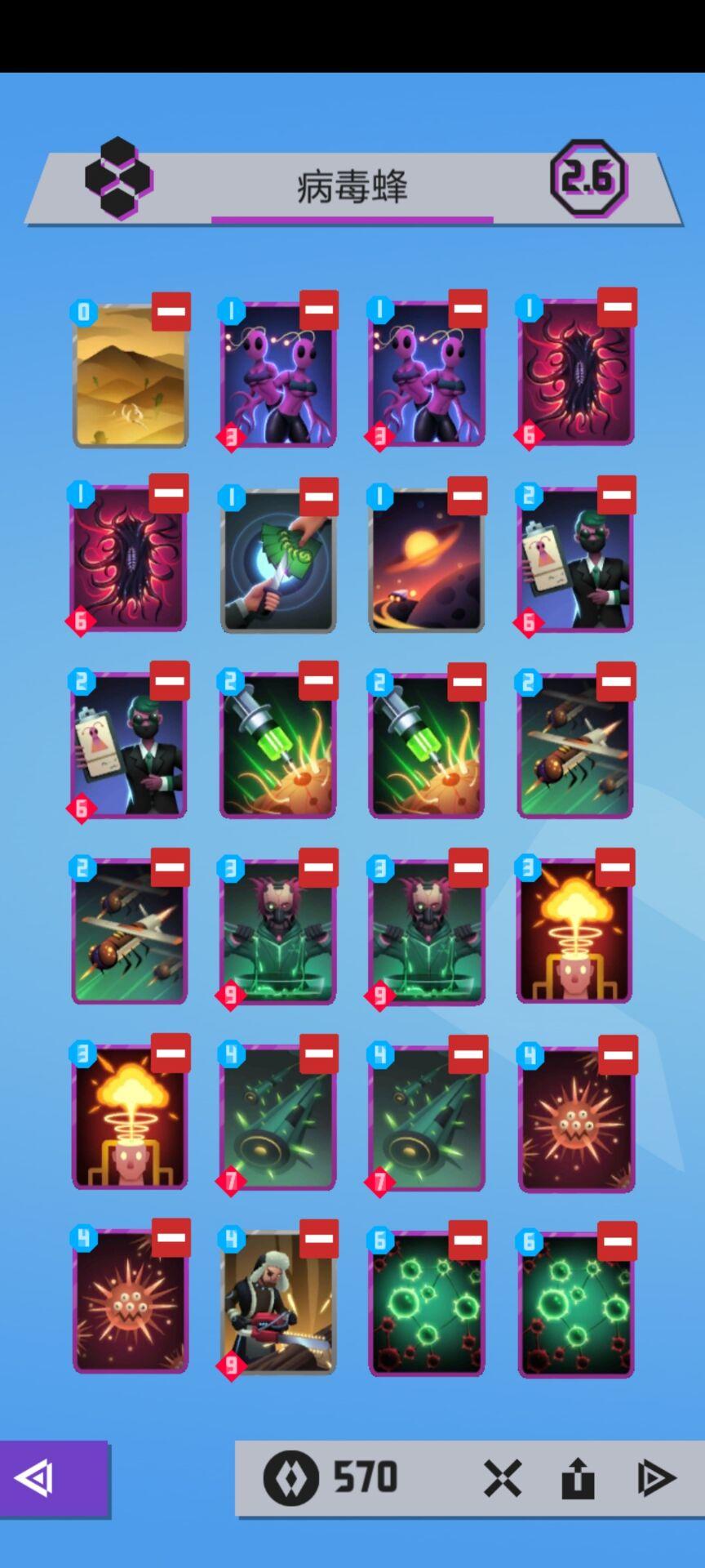 核心思路:解场,病毒可以配合推销员,沙漠上蜂群导弹相当于2费打7顺带变蛹,双管齐下很容易就能解掉对手辛苦铺出的三路场面。