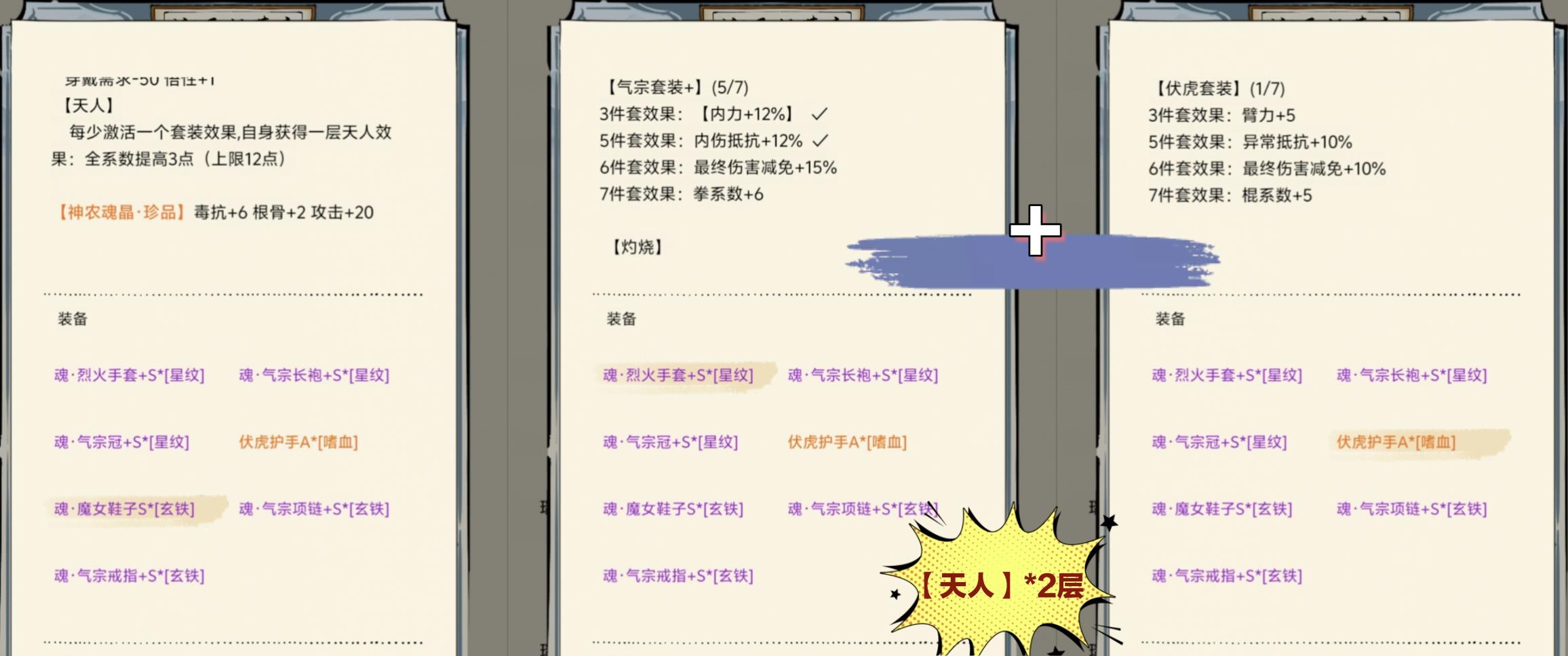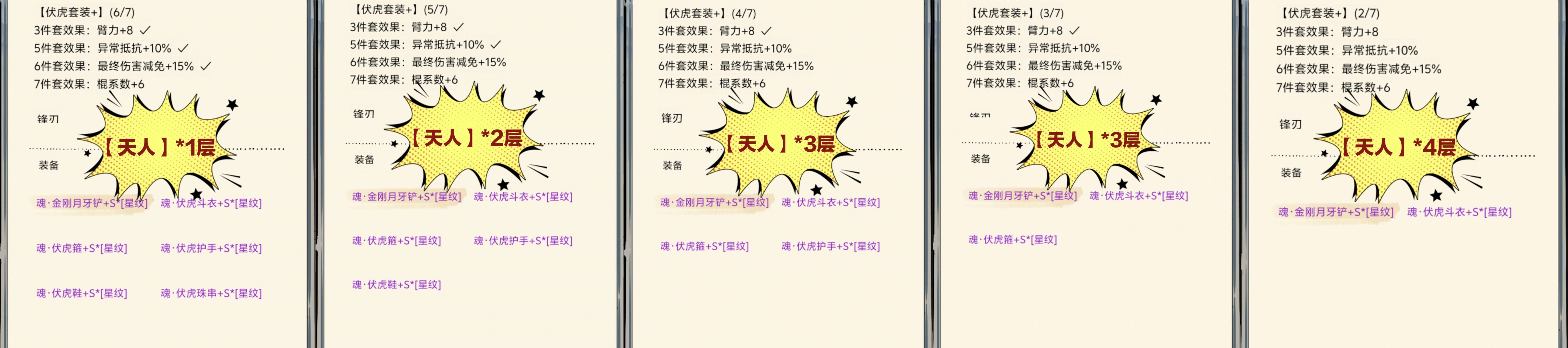 →也就是说,图中套装装备中的效果每少勾一个,天人层数才多一层,并非每少一个装备就多一层: