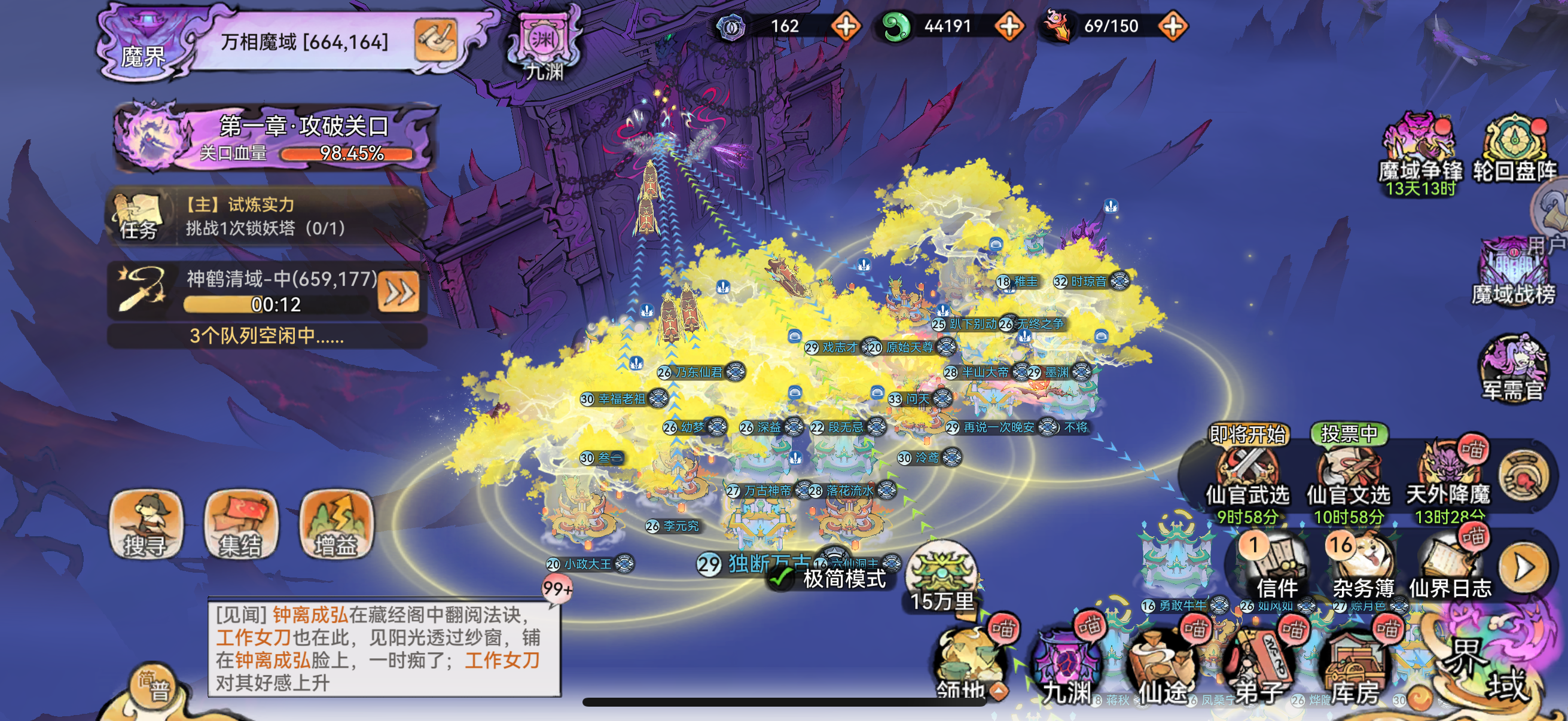 可以看出这次输出量,完全需要区内人数多,以及想要首破的小伙伴需要早起集中一波攻打。小tips就是,魔界堡垒记得搬到要攻打的那个关口省云舟往返时间。还有小号可以多来几个蓬莱给高战们提供buff。