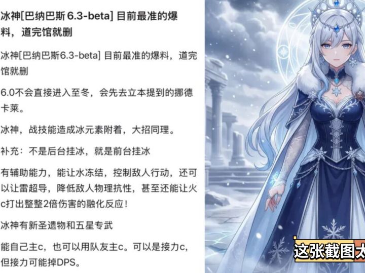 怪不得叫冰神了,这么长的名字谁能记住啊?这次连技能机制也说了,她能挂冰元素,又能控场又能帮队友增伤,还能减敌人抗性,看来又是一个冰系大蝶!