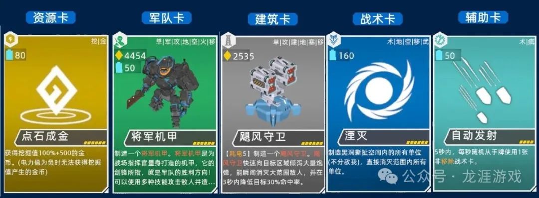 辅助卡:全局被动效果,影响资源获取、建造速度等。