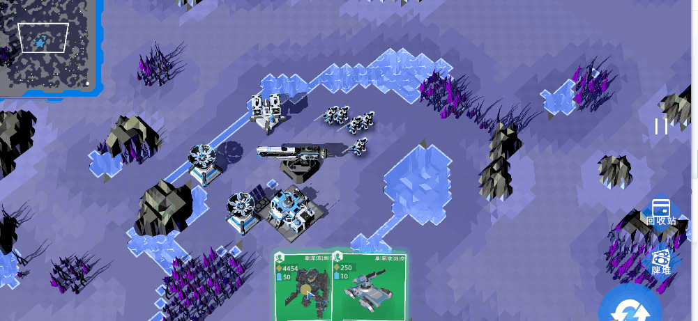 资源运营是核心:游戏要求玩家像在传统RTS中一样,精细管理资源(通过资源卡获取)。何时发展经济、何时升级科技、何时暴兵应对攻势,这些决策环环相扣,决定了你的军事实力。