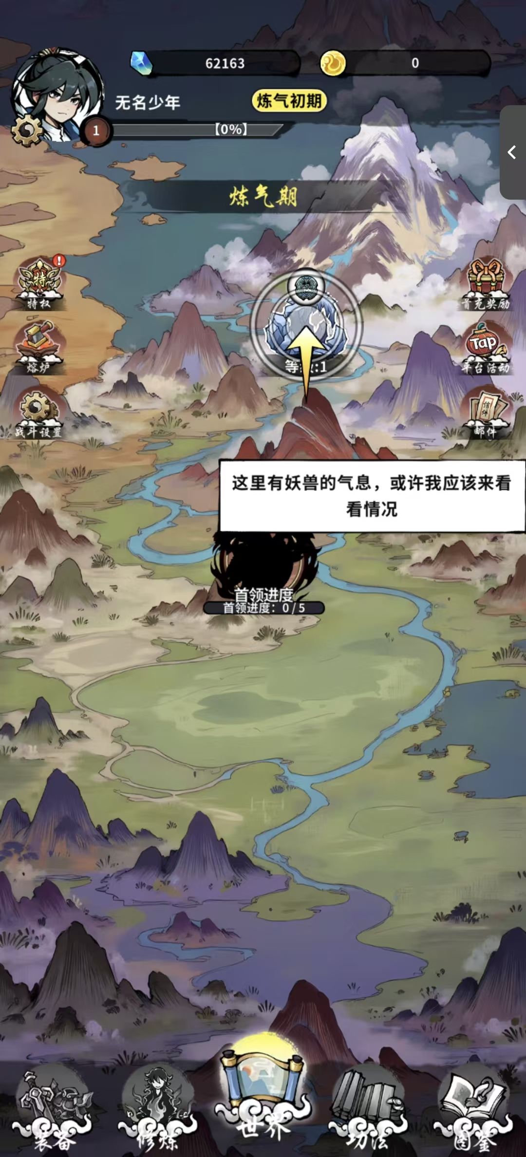 40级渡劫后解锁装备强化,装备强化是对装备基础属性进行强化提升,前期不推荐强化,60级后用毕业装备强化一步到位,渡劫后修炼境界修炼加点,功法升级一下技能等级,更新一下身上装备,以及功法技能装备雕文提升推图效率