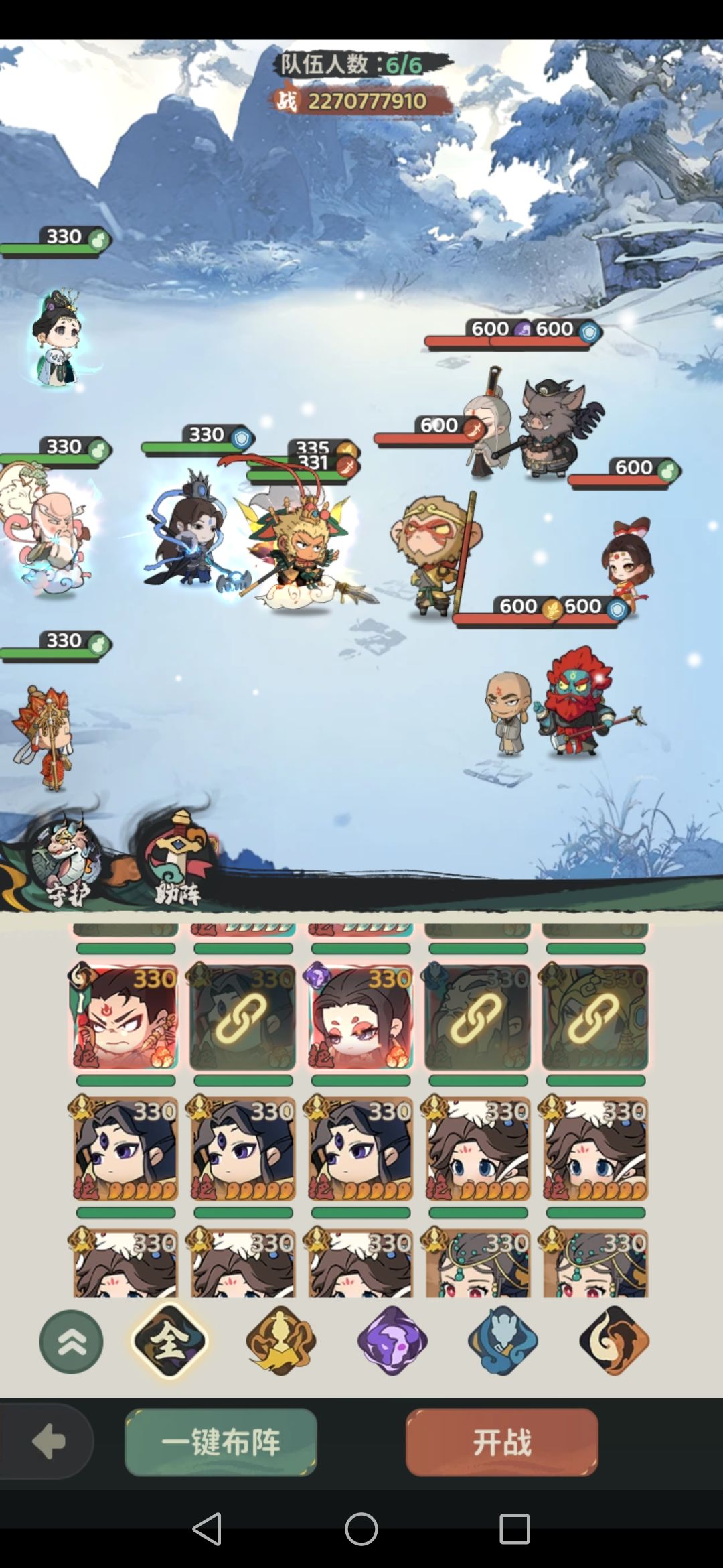 站位:越战倍数太低,真君变身不了就把天蓬放助战换齐天大圣上来,越战倍数高就把大圣放助战,天蓬放后排稍后位置拉扯些敌人过来集体抗伤,把压力集中在中排和后排,避免前排显圣真君即便变身也扛不住
