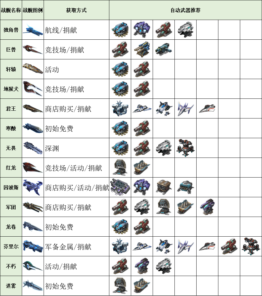 备注:由于自动武器和战舰与舰长高度相关联,这里默认是以合适的战舰与舰长来推荐使用,结尾会附带搭配表
