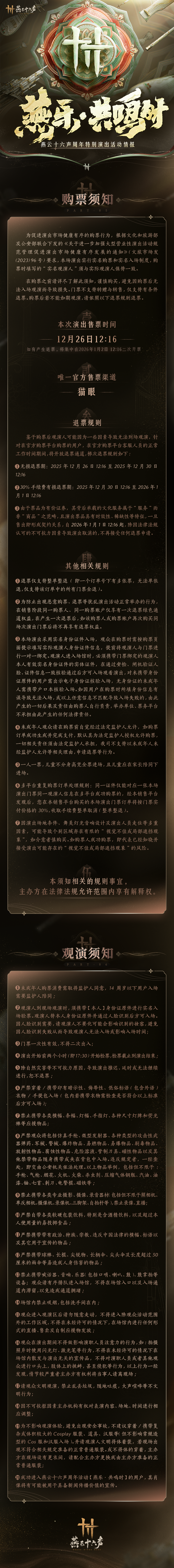 【燕乐·共鸣时】一周年特别演出,是基于燕云IP音乐与内容展开的综合性视听演出,将根据部分游戏经典曲目进行现场节目演出和改编演奏。现场演出外,我们还将在抖音、bilibili、小红书等各大平台对演出全程进行高品质直播,无法亲赴现场的朋友也无需担心。