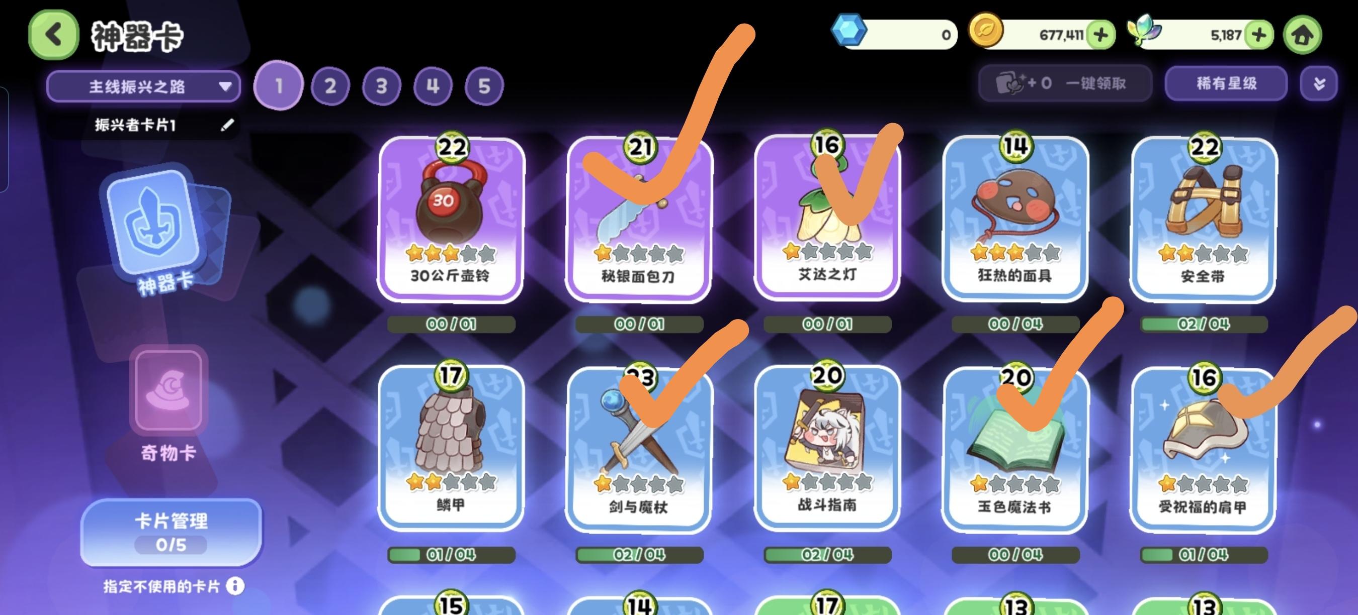 主线任务分栏下,神器卡和奇物卡需分别设置