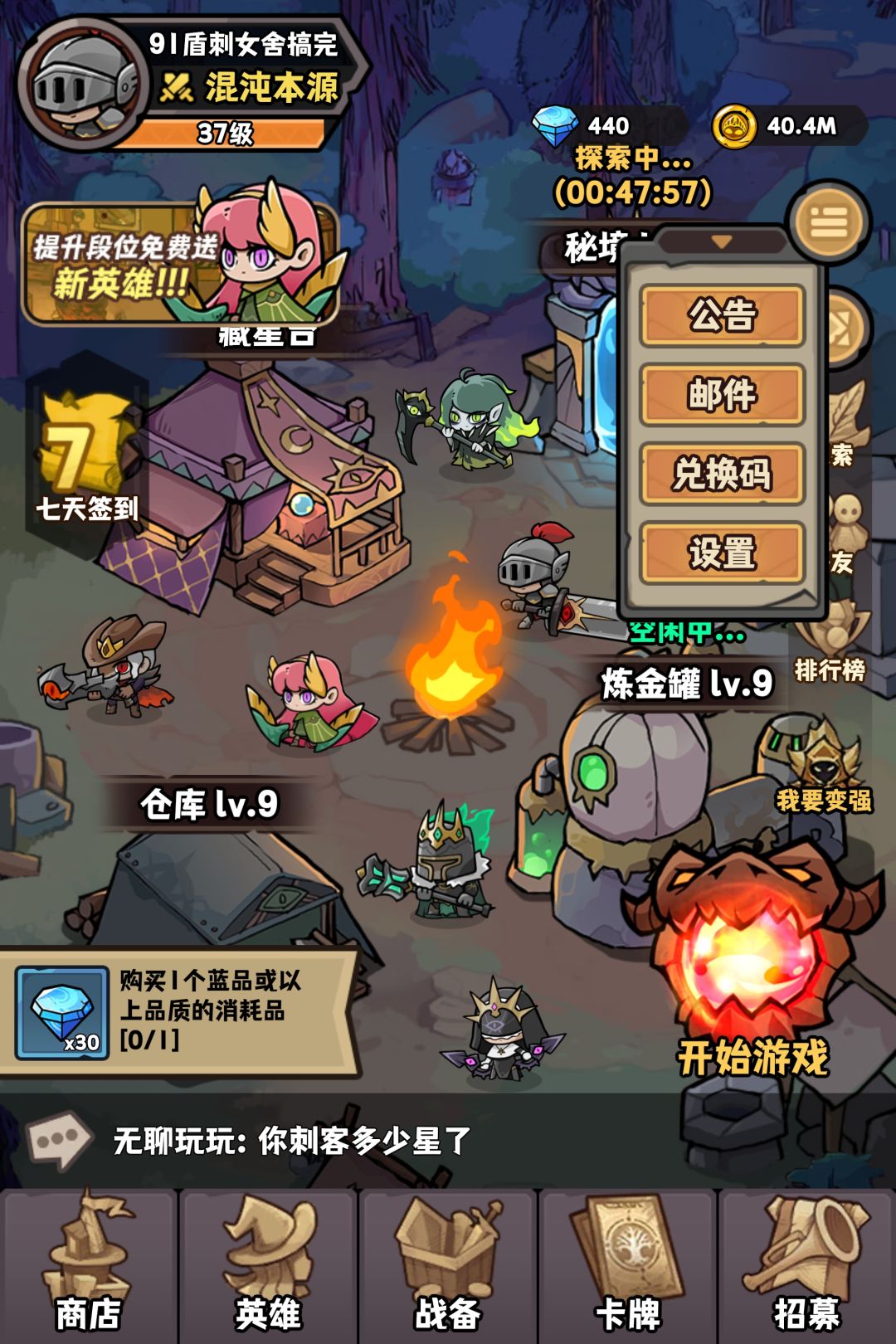 跟完新手教程后,先点开右上角刷输入兑换码换抽数,然后按左下角招募开始刷英雄