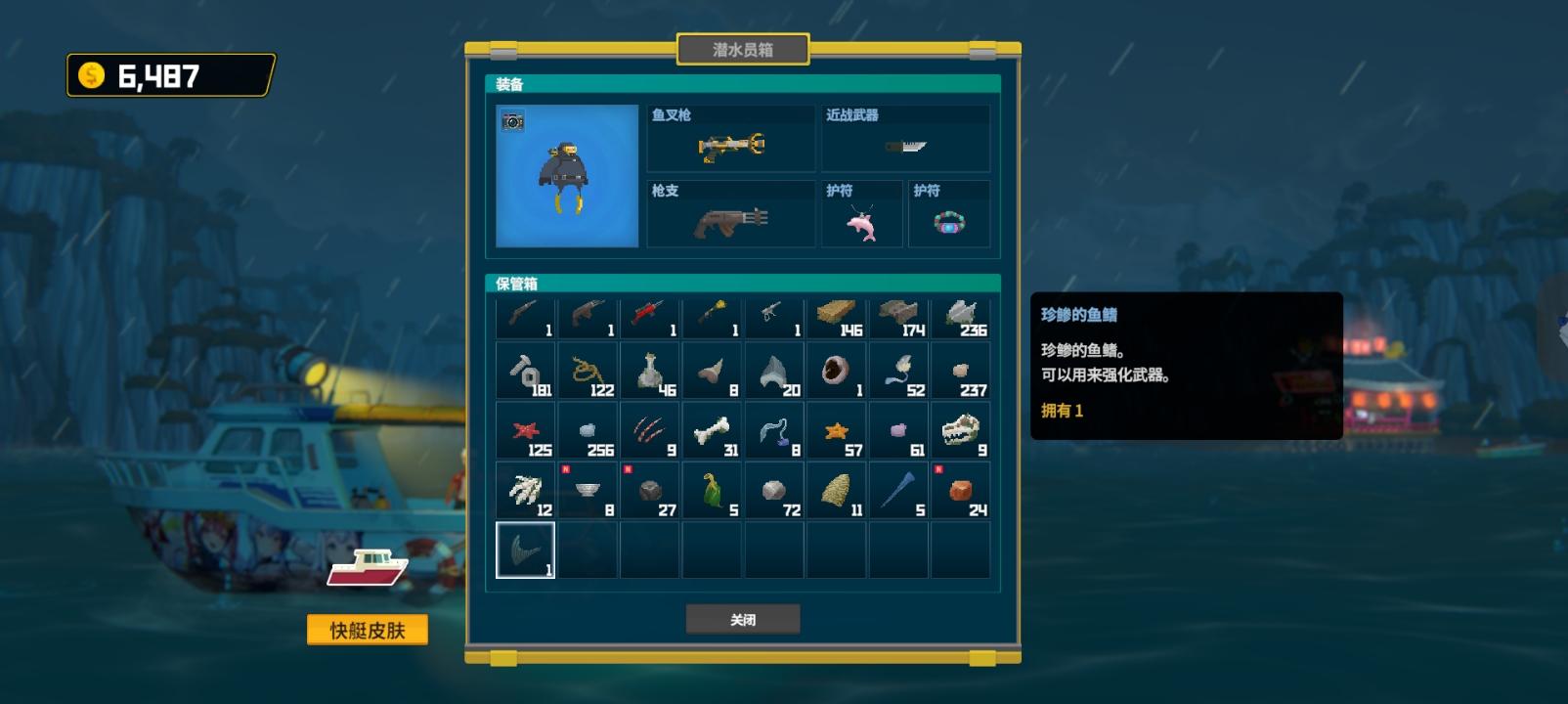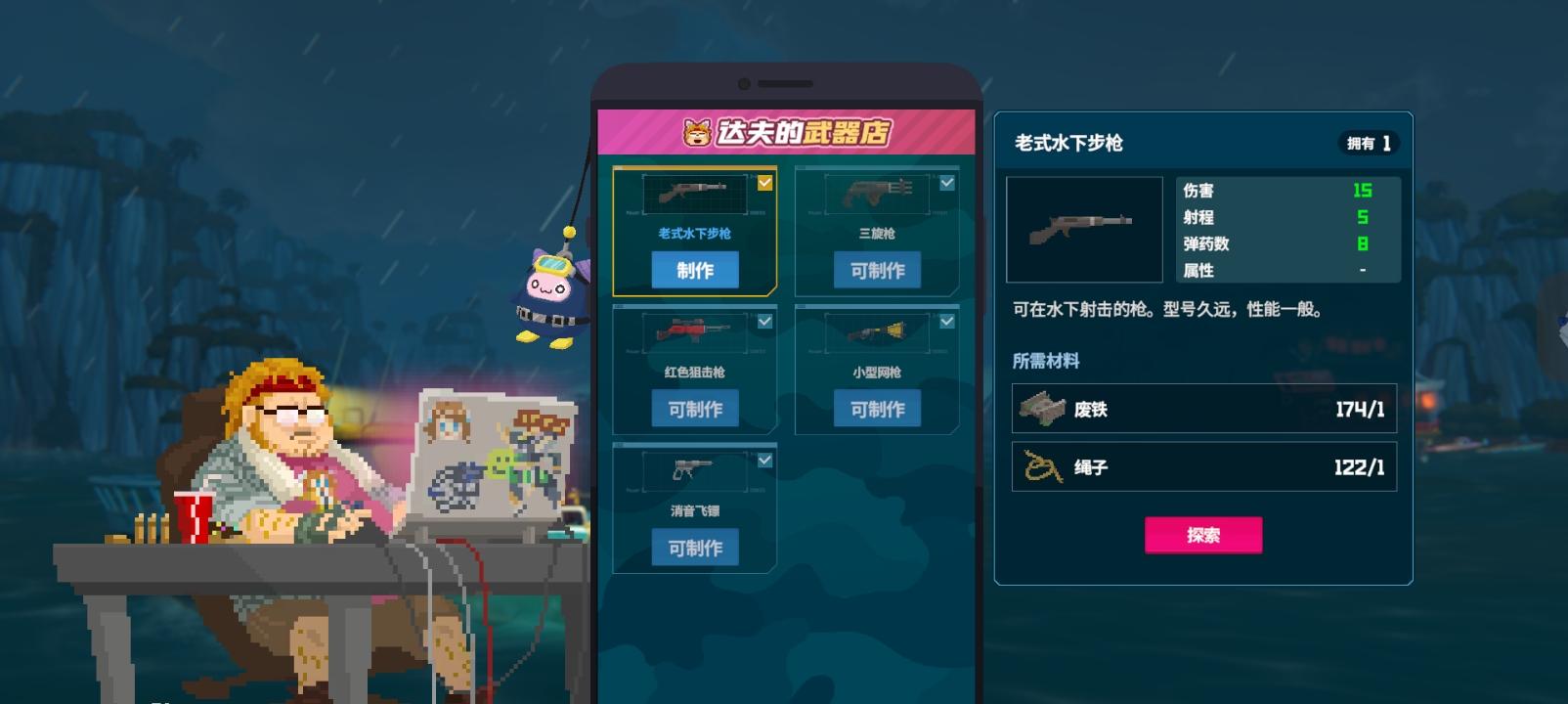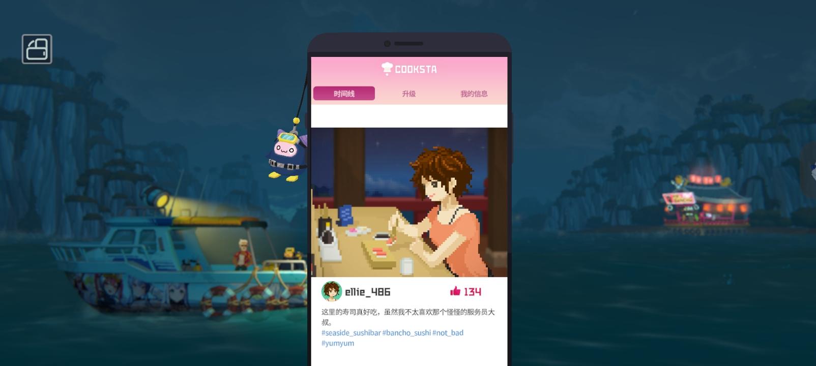 尤其是开箱开锅的乐趣,也许会如你所愿正巧开出你刚需的鱼枪用以对付鲨鱼;又或开出捕鱼网催眠枪来,只能对着水母小鱼使使;当然特殊加成的鱼叉和奇葩近战武器也会让人眼前一亮;而最喜欢的莫过于开猫罐头,但我还是常常忘记喂小猫;盐相信大家都在收集或者派遣员工寻找,开出它我也是又爱又恨,毕竟现阶段最贵的料理缺它不可。