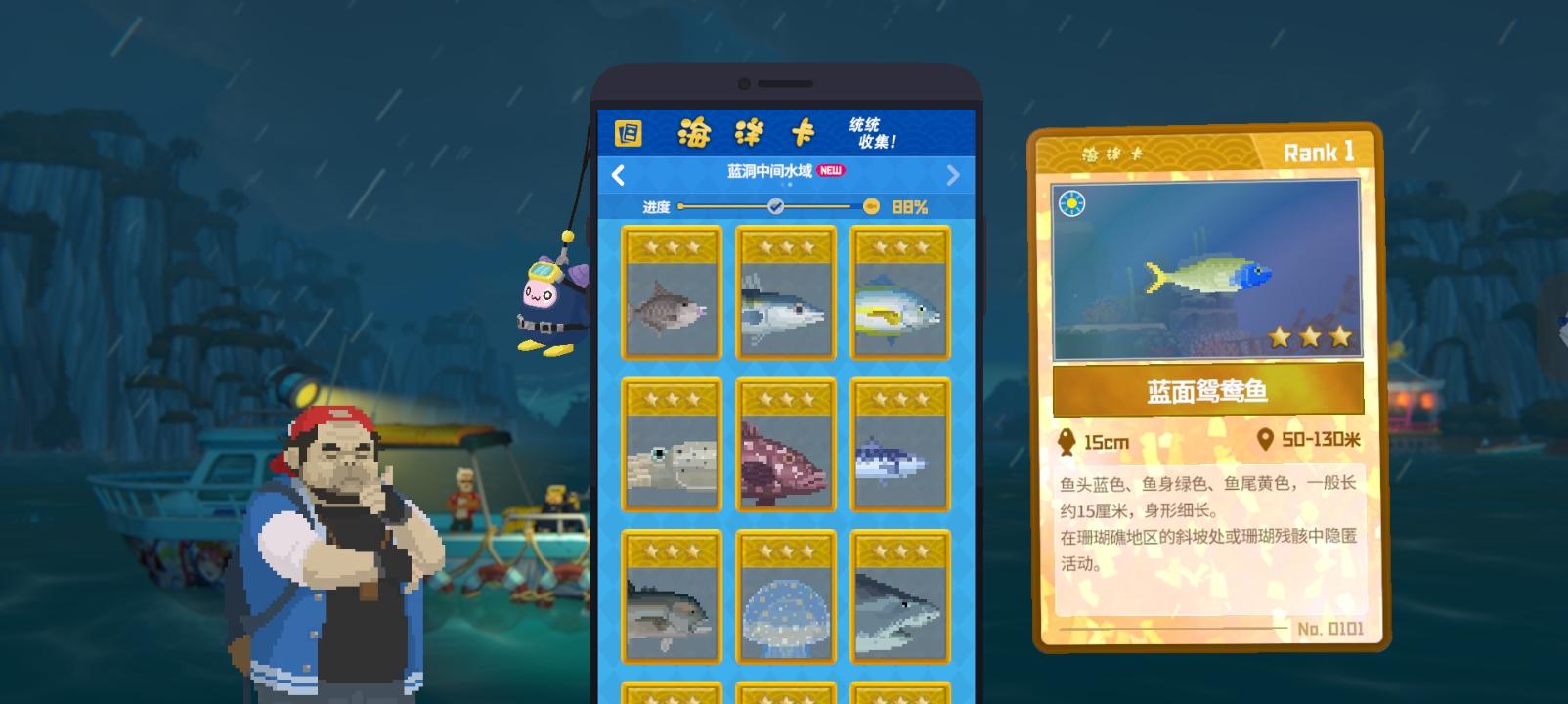 “海洋卡”中记录着所有你捕获的鱼类,金卡的炫彩则格外令人着迷。
