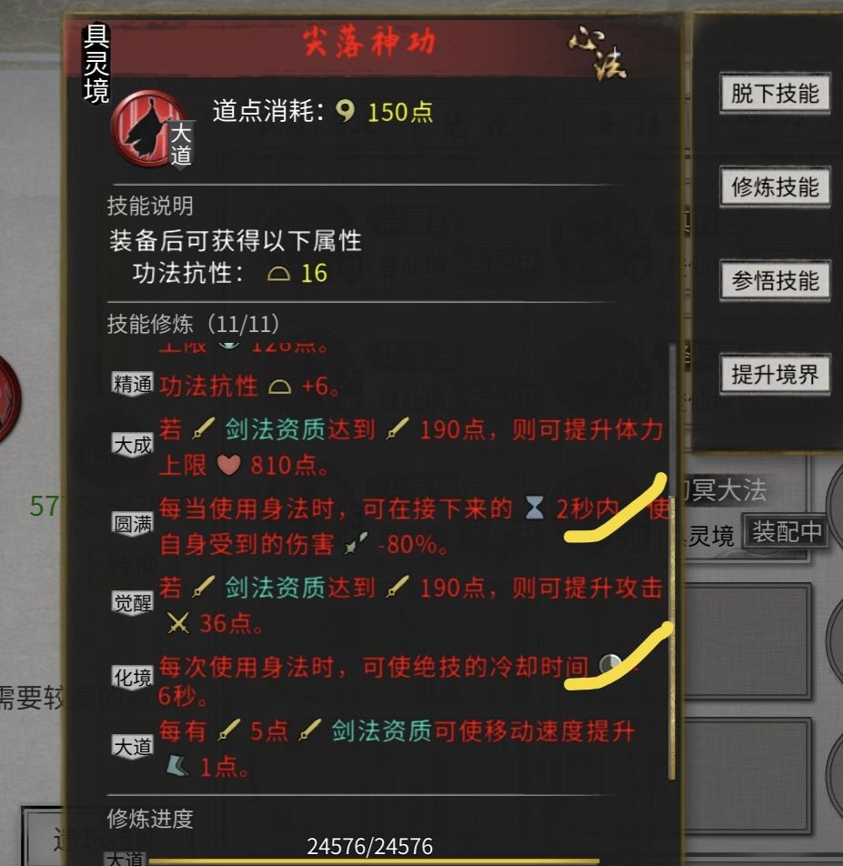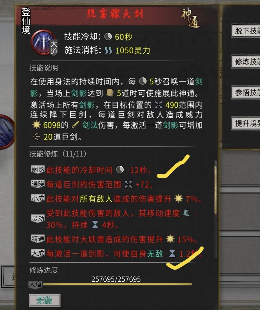 剑大法:四个冷却,武技+绝技+身法+神通冷却