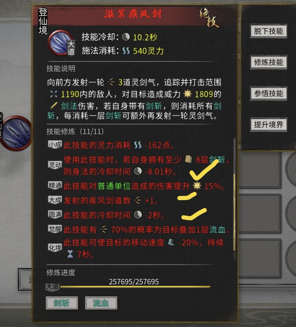 绝技:疾风剑(剑斩) 发射数量+技能冷却