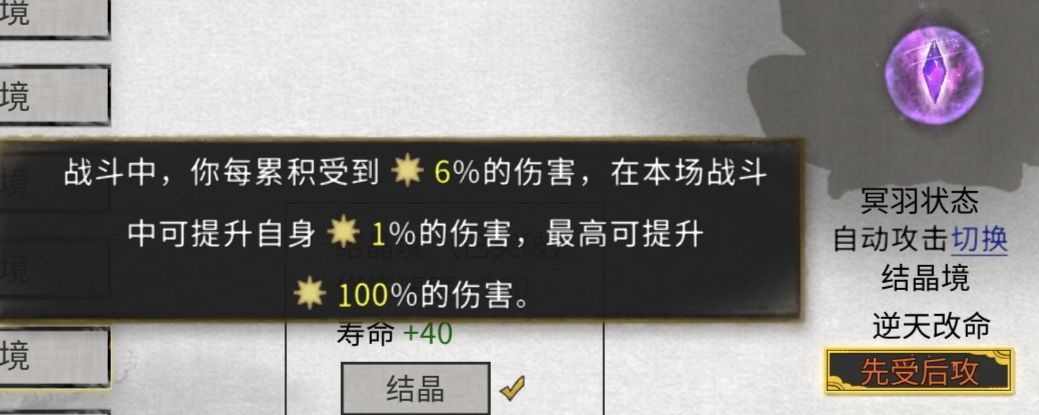 先受后功:稳定的增加100%的增伤,攻击翻一倍。为啥一直强调增伤:叠成,如你面板攻击力为1000,如果宠物带的是药灵就会三倍增伤,打出伤害:既1000*(1+先受后攻100%)=2000*3(药灵三倍增伤)=6000*2(杀心骤起5秒内2倍增伤)=12000。一千的攻击力轻轻松松打出了一万二的伤害