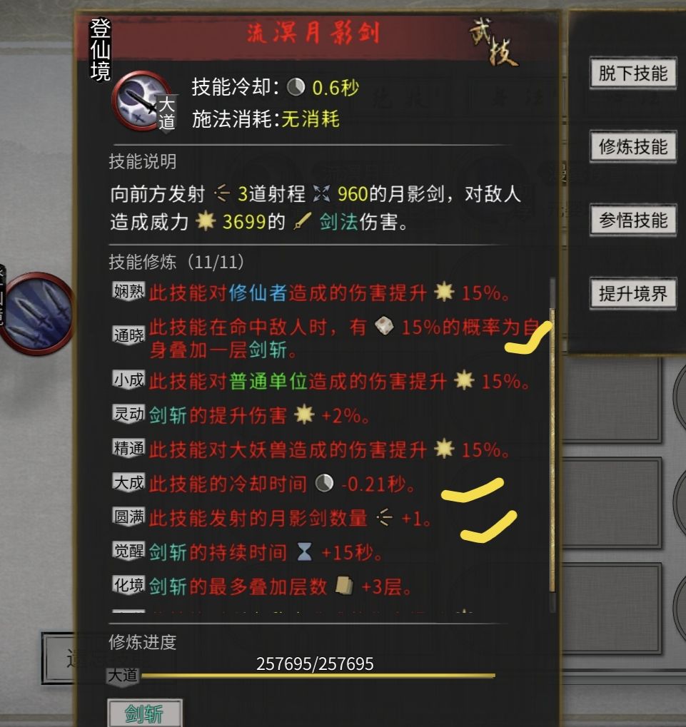 武技:月影剑(剑斩) 发射数量+技能冷却