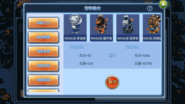 4、宠物融合扩展,增加WASA联名宠物融合