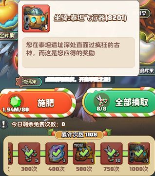 如果对当前果实的等级不满意,想要更高等级的果实,可以给幸运果树施肥,刷新果实类型(4级琉璃果不会被刷新),系统每天赠送2次免费施肥的机会,之后则需要消耗水晶。