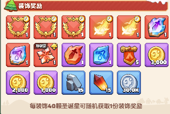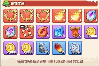 活动期间,勇者们可以通过参与冬梦奇境庆典活动的其他玩法(如前面的光啸变变变)获取【圣诞星】,每40颗圣诞星可以用来装扮一次圣诞树,并获得随机装饰奖励。