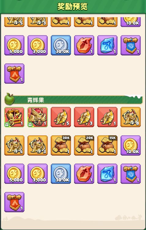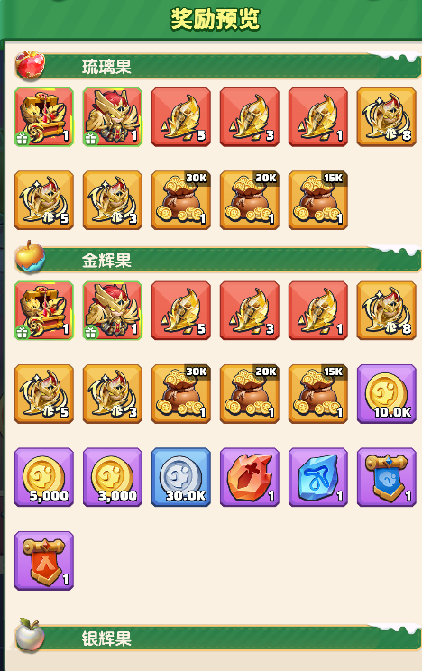 果实一共分为四个等级,果子等级越高,则获得稀有奖励的概率越大哦。