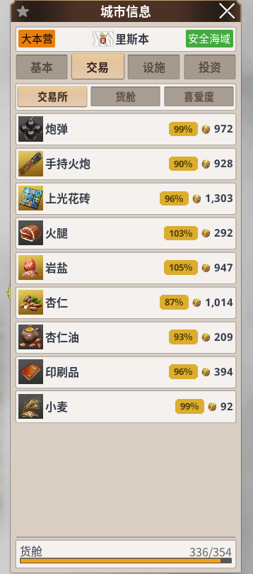 - 开拓新航路或规划跨洋航行时,优先选择特产作为交易品,能降低行情风险。