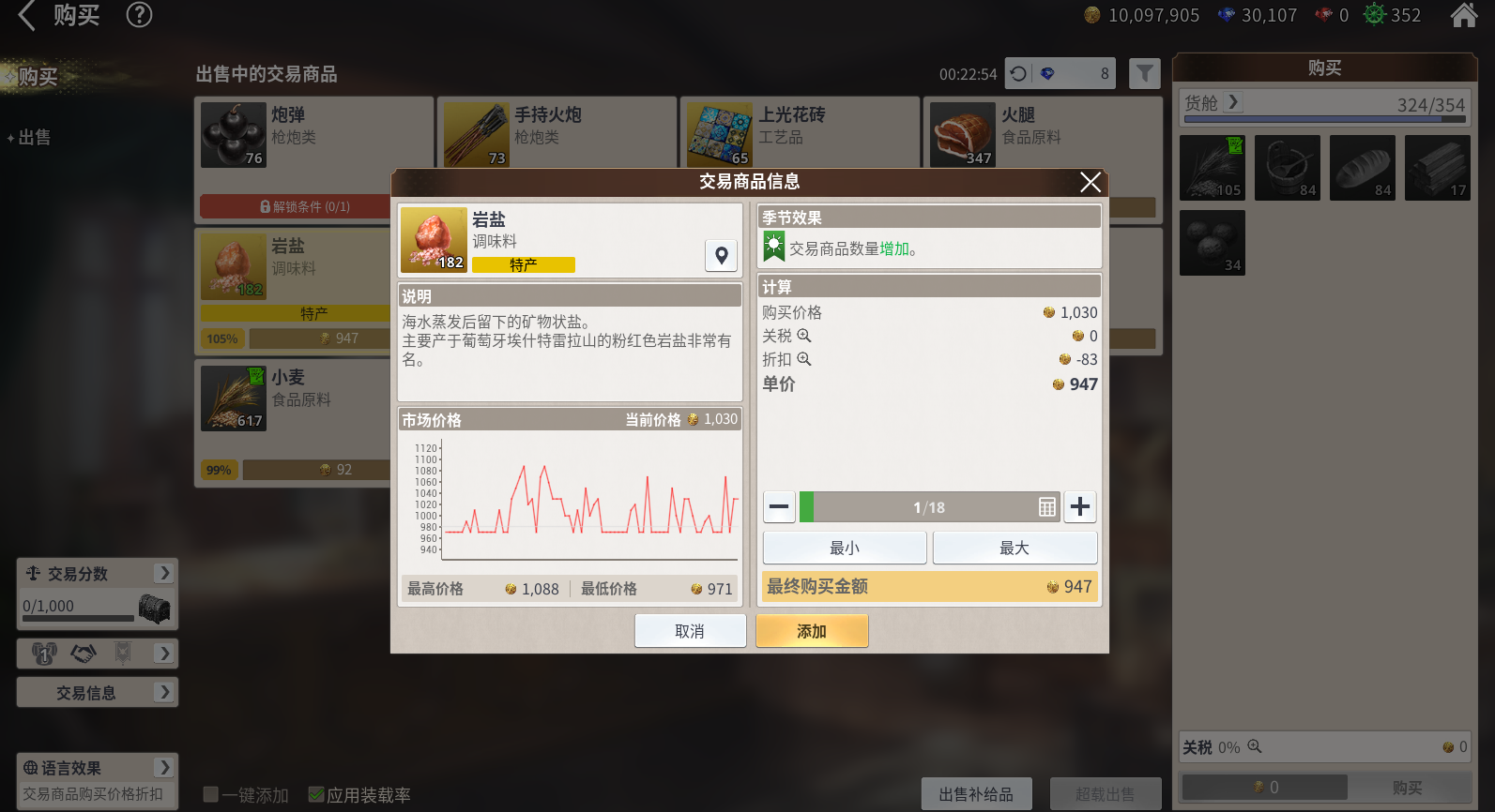 - 季节影响:部分贸易品的可购买数量会随季节增减,可通过贸易品旁的季节标识判断,规划采购时机。