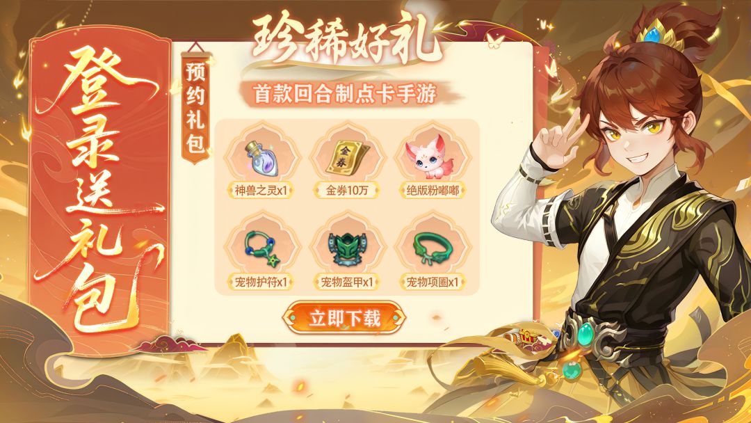 礼包内容:神兽之灵1个,金券10万,绝版粉嘟嘟*1个,宠物项圈*1个,宠物护肤*1个,宠物盔甲*1