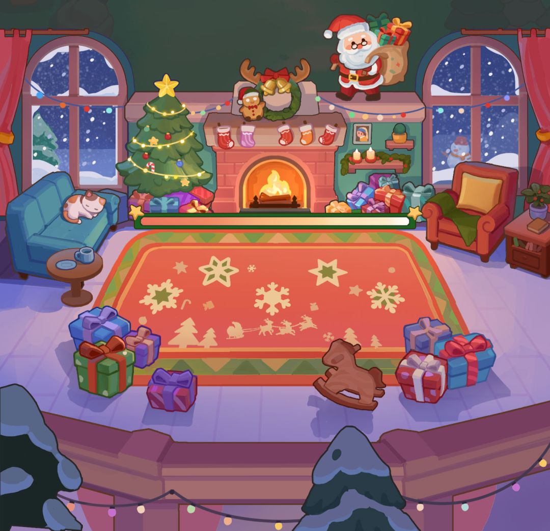 传说级城墙皮肤【圣诞夜话】惊喜上线!窗外飞雪漫天,壁炉里的火焰噼啪轻响,挂满彩袜的挂架旁是装点完成的圣诞树,沙发上的猫咪蜷成软团,满室的礼物与星光,都在等你推开这扇暖融融的门,共度温馨圣诞夜~