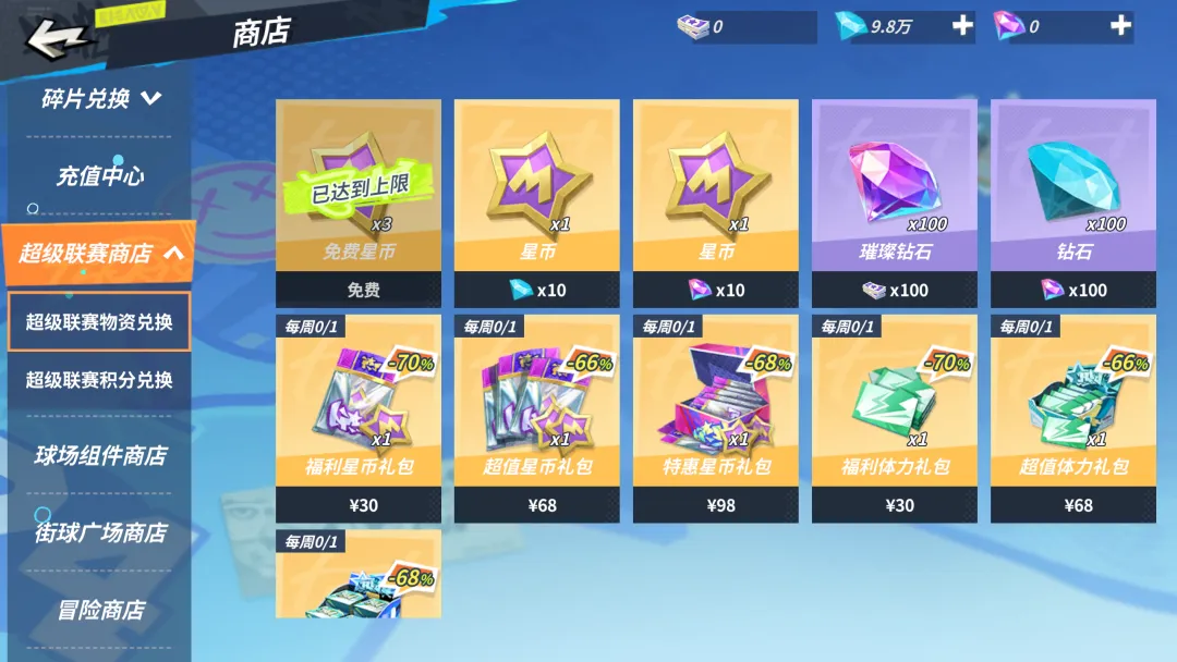 交易大厅通用货币为璀璨钻石,该货币可通过点券兑换获取,也可在超级联赛商店中兑换为钻石。