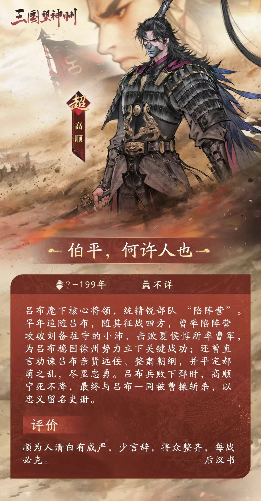 陷阵之志,有死无生。新主将【高顺】将于12月25日登场!