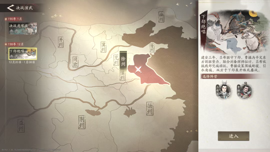 诸位明公,决战演武全新章节“下邳绝唱”已开启!明公可选择吕布军或曹操军阵营前往开启挑战,通关关卡活动后更能获得举才诏、高级装备等丰厚奖励。